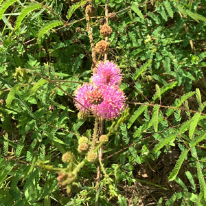 to stop at the edge of the Walhalla Reservoir to see Littleleaf Sensitive Briar growing happily along the border of the trail. Petite and charming, this delicate vine adorned with pink powderpuff flowers appears to be straight out of a Dr. Seuss book.