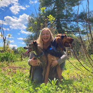 My happy place is any time I am on the trail with my two pups, Gladdy and Jolene. We get into many adventures together, but the best ones always include some dirt, trees, and time to ourselves to explore.