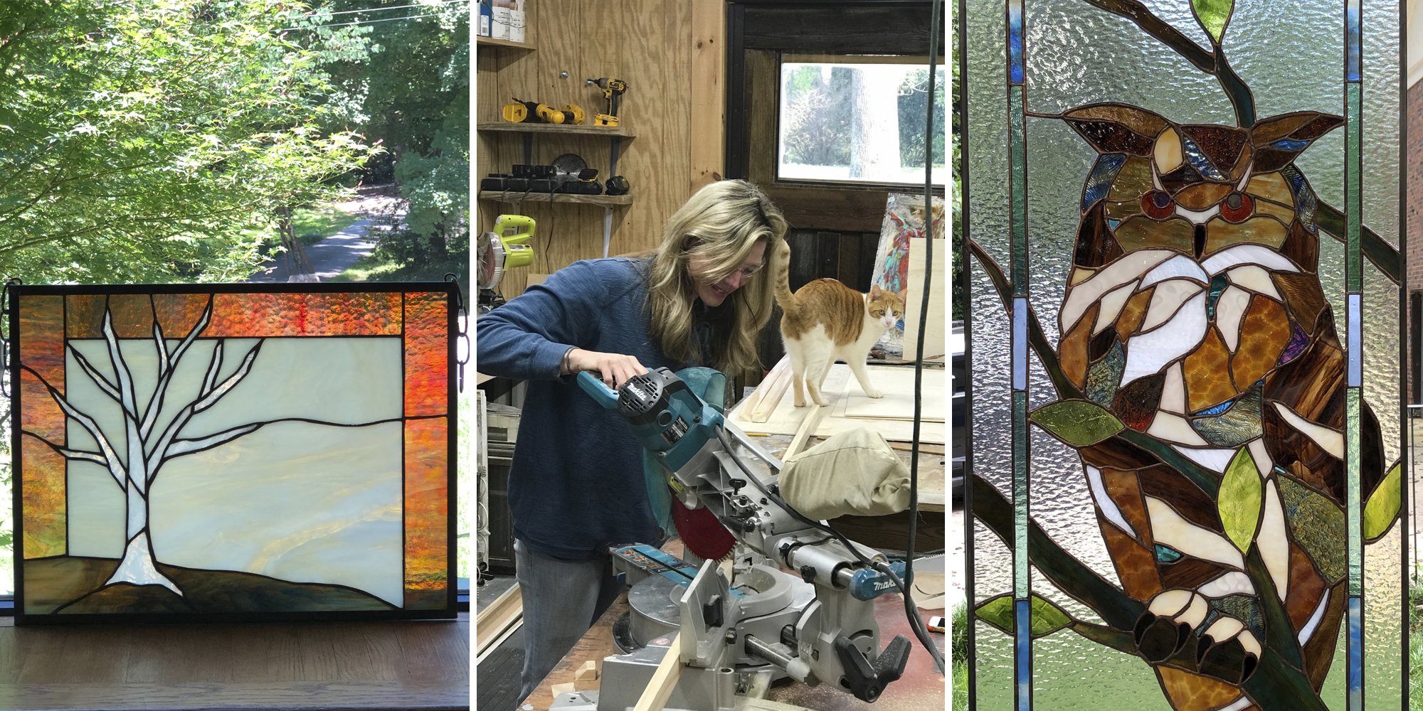 When I was little and wanted to spend time with my dad, we’d head to his workshop or to work in the yard. I grew up outside and tinkering with tools. Then I went to the Fine Arts Center in Greenville, where I studied theater, and continued learning about art and theater through college. When it was time for an internship, I found a stained glass place near the University of South Carolina and I fell in love. I learned hands-on. I didn’t learn from a class.