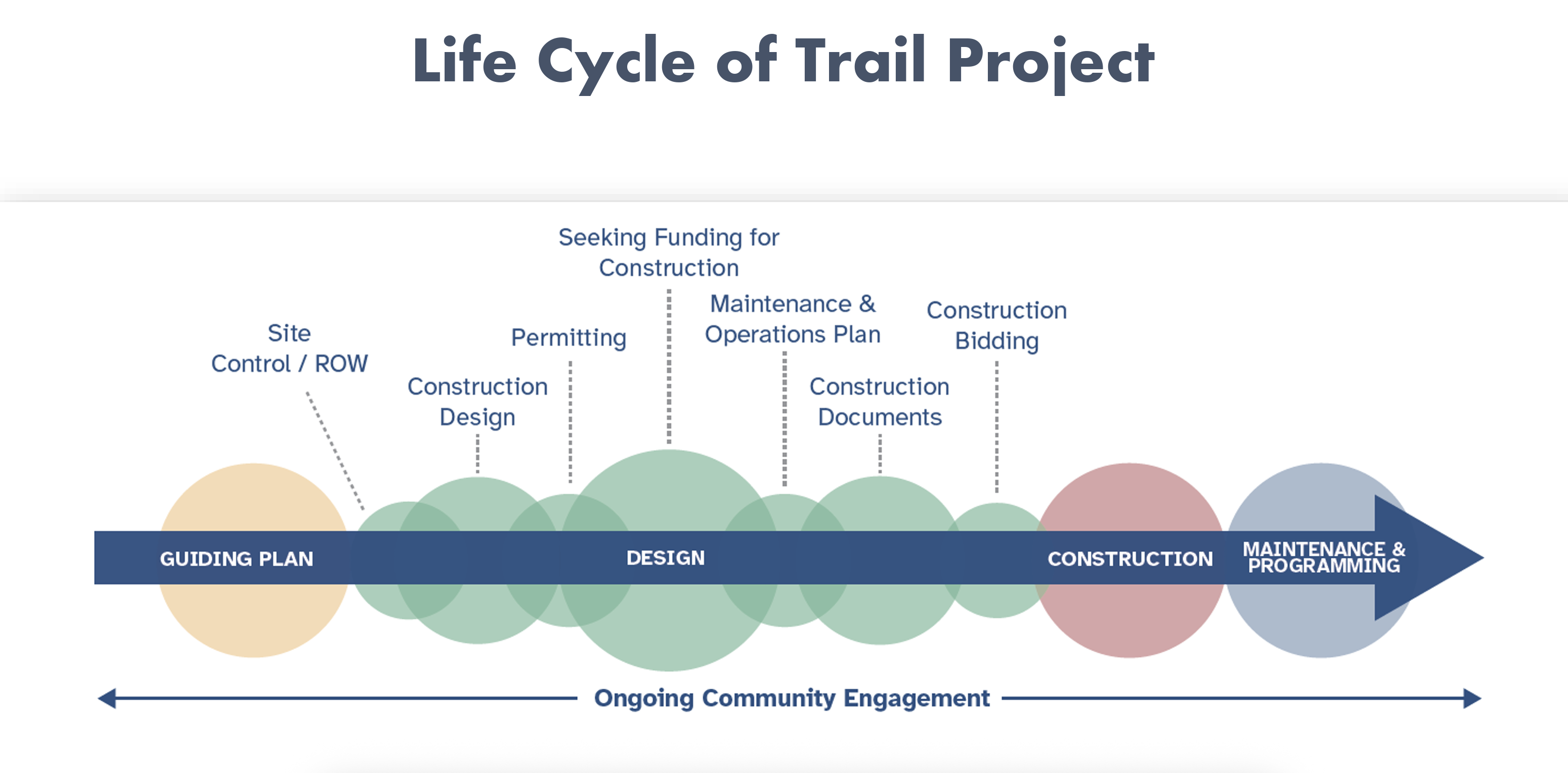 With the land purchase complete, trail partners are now focused on next steps. These include raising millions of dollars for construction and engaging communities along the trail in planning and design. The timeline for opening the trail will depend on many factors, including the availability of federal and state grants, which are the most likely source of funds for construction.
