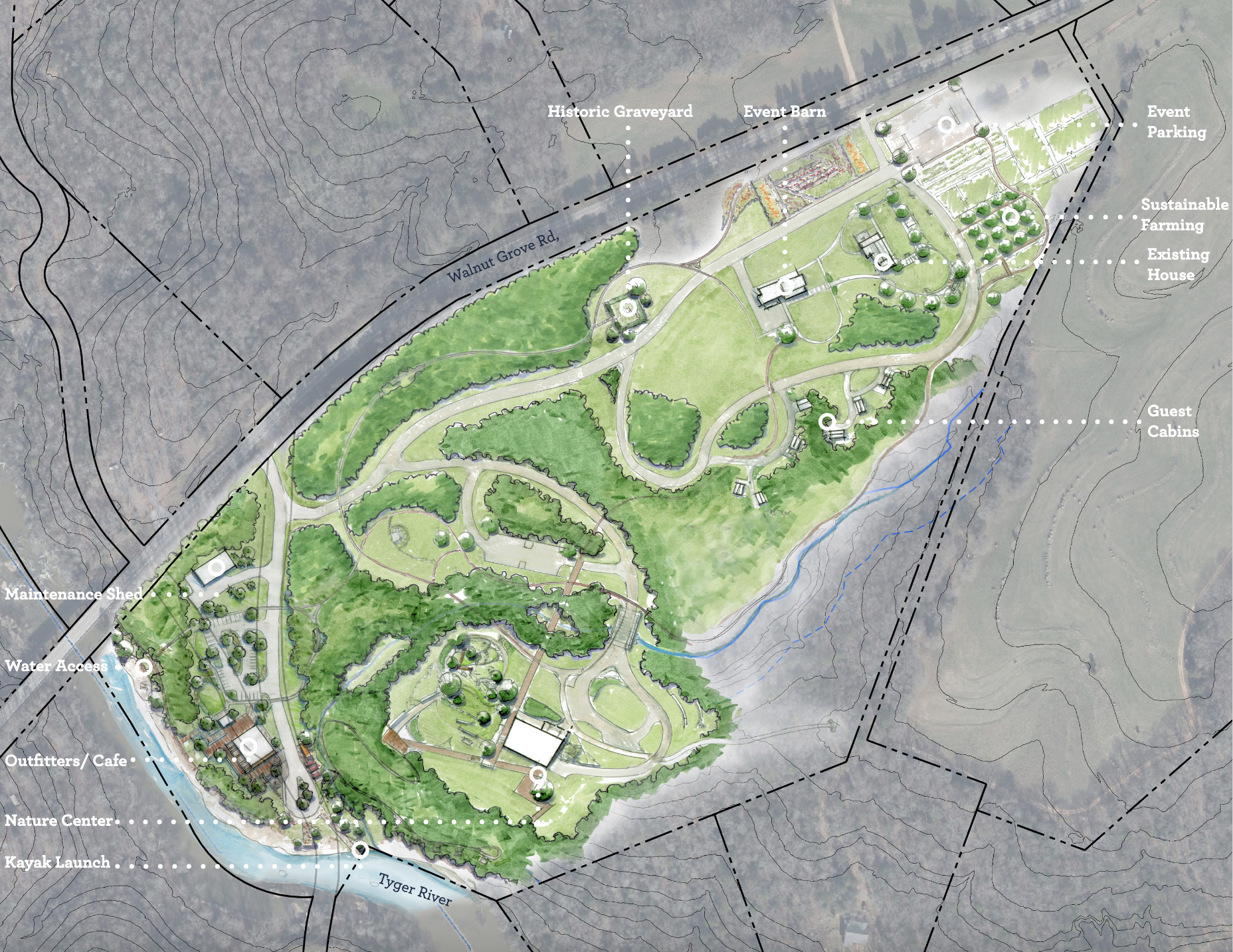 The proposed work would cover 20 river miles and provide 10 hours of class I – IV paddling, 10 public park spaces, and the Tyger River Nature Center, located on the Foundation's property at the confluence of the North and South Tyger, which will serve as a regional destination for education, recreation, and event-based eco-tourism.